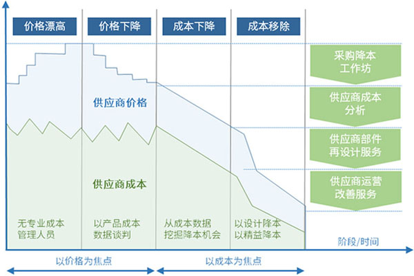 近年來,一些通過將價格轉(zhuǎn)移到成本作焦點的最佳實踐,都是通過與戰(zhàn)略供應(yīng)商的協(xié)同合作來實現(xiàn)的。